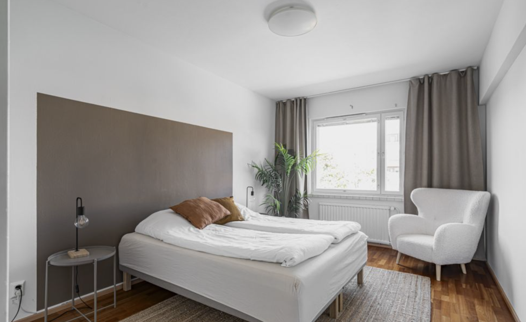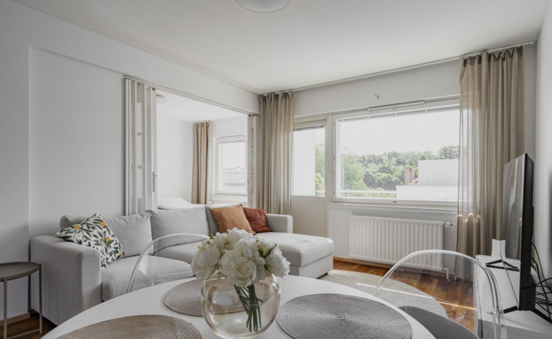 Linnankadulla, korttelin päässä Turun kauppatorista ja kauppakeskus Hansasta, on kalustettu tilava kahden makuuhuoneen huoneisto 87 m² 7. kerroksessa.